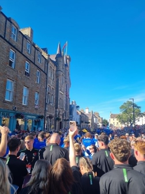 Bob dwy flynedd, mae ynysoedd ar draws y byd yn dod at ei gilydd i gystadlu yn y ‘mini Olympics’, gan gynnwys Bermuda, Ynysoedd y Falklands, Ynys Manaw a lleoliad y gystadleuaeth yn 2025, sef ynysoedd Orkney. Tra bod miloedd o gystadleuwyr yn ymuno i chwarae golff, gwneud gymnasteg, nofio a rhedeg, mae timau hefyd yn cystadlu yn y pêl-droed. Felly, teithiodd tîm o ferched a thîm o ddynion ar fws efo’r cystadleuwyr eraill o Ynys Môn am 16 awr i dop yr Alban, cyn teithio ar gwch ar draws i ynysoedd Orkney.